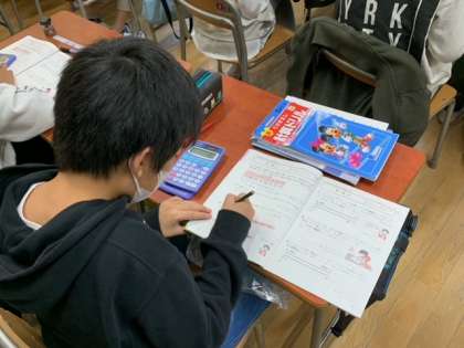 平均=全体÷個数 で平均を求められることを学習し、練習問題をしました。