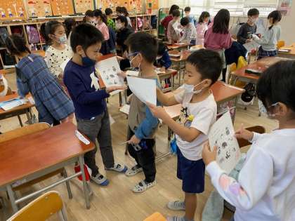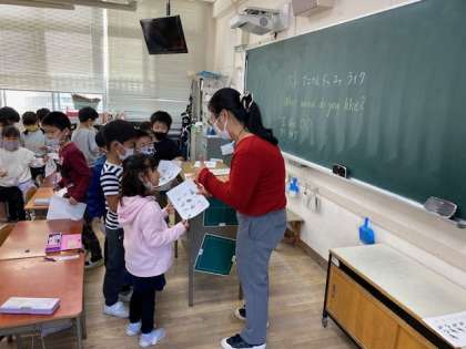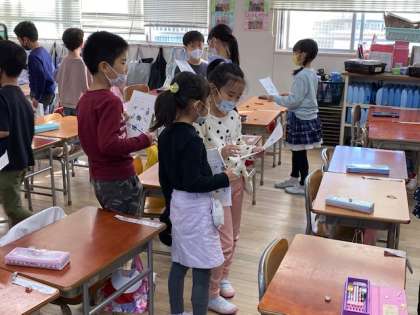 1年生の外国語活動では、自分の好きな動物を言い合って、ビンゴゲームを楽しみました。