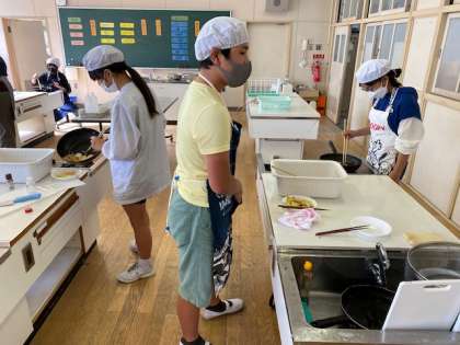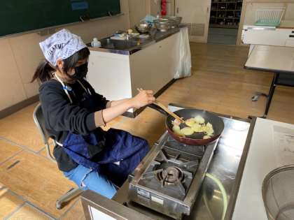今日6年生は調理実習に挑みました。メニューはジャーマンポテト。