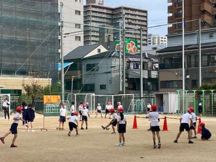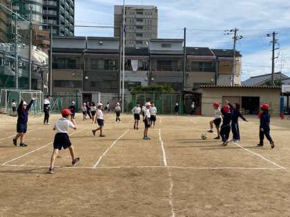 2年生はミニサッカーをしていました。ワールドカップの影響でしょうか。とても元気に盛り上がっていました(^^)