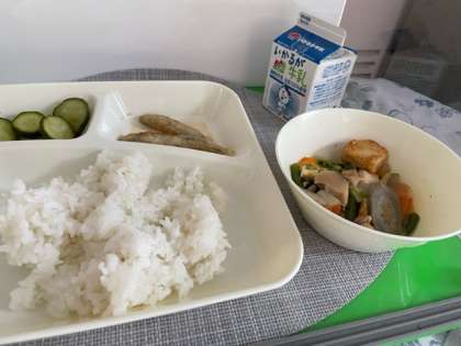 きびなごてんぷら、あつあげと野菜の煮もの、きゅうりの甘酢づけ