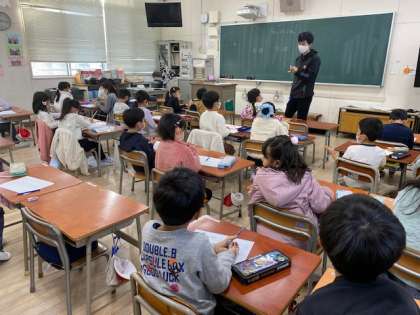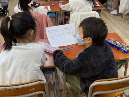 児童朝会で健康委員会から話のあった「すいみんチャレンジカード」について、1年生が早速、取り組んでいました。