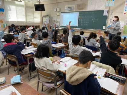 今日の4年生の算数では「仮分数を帯分数になおす方法を考えよう」とのめあてで学習を進めていました。