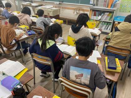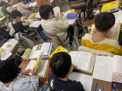 4年生は「ごんぎつね」に出てくる語句の意味調べをしていました。