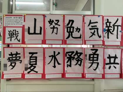 それに合わせて、5年生も2022年の一年を振り返り、漢字一文字で表しました。選んだ理由もかいてあります!