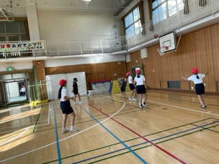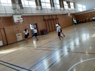 体育の学習では、バスケットボールをしています。