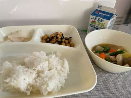 鶏肉と野菜の煮もの、ひじき豆、かぶのゆず風味