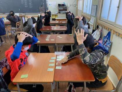 担任の先生の抑揚ある声に子どもたちの手も素早い反応を見せていました。