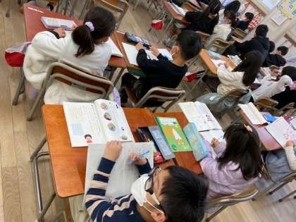今日の国語では、学んだり知っていたりする昔話を参考に、設定した登場人物を用いてオリジナルの昔話を書こうというもの。