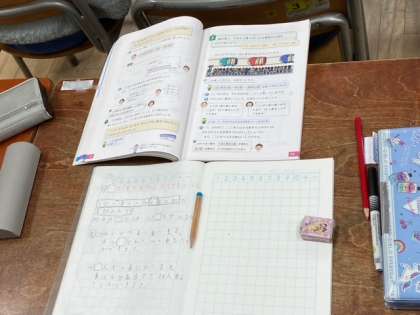 3年生の算数では、□に当てはまる数の求め方の続きで、文章題に取り組んでいました。
