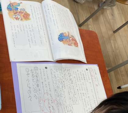 今日は「かさこじぞう」の後半部分の学習です。おじいさん・おばあさんが場面場面で何を言ったのかを出し合い、言葉に込められた意味を考えていました。
