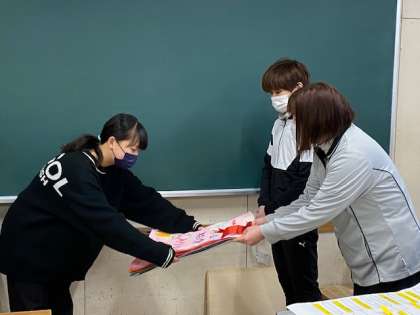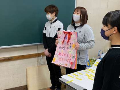 毎日、美味しい給食を作ってくださっている給食調理員さんに、子どもたちの手作りの感謝状が手渡されました。