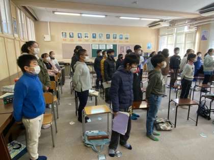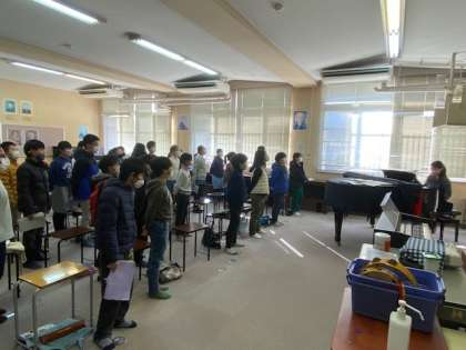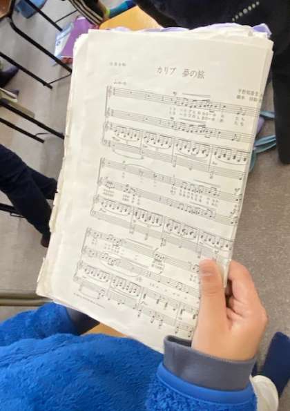 とても美しい合唱が聞こえてきました。音楽室に行ってみると5年生でした。曲目は「カリブ 夢の旅」。仕上がり具合はすでにピークではないかと尋ねてみると、子どもたちは「まだまだ」とのこと。