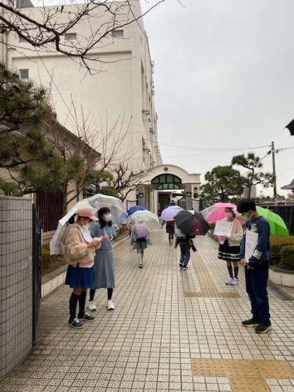 本日は、子どもたちが登校する時間に合わせたかのように小雨が降っています。