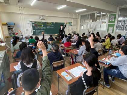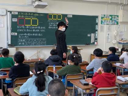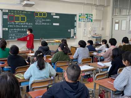 5年生の算数では、規則生を見つけて解く問題にチャレンジしていました。先週、い組でも行っていましたが、今日は、は組です。