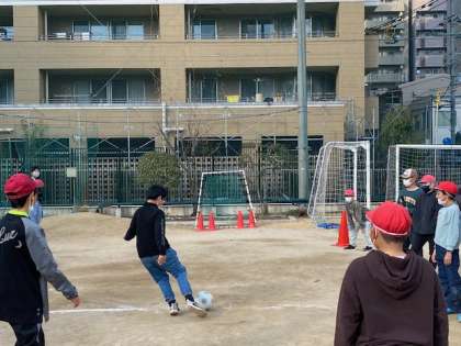 放課後、運動委員会主催のスポーツ大会が行われました。今回はPK合戦です。低学年・中学年・高学年のブロックに分かれて事前にエントリーしたチームで競います。