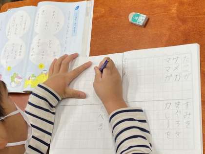 1年生の国語では、だれ(なに)が・なにを・ようす(どのように)・どうしたという文作りに取り組んでいました。