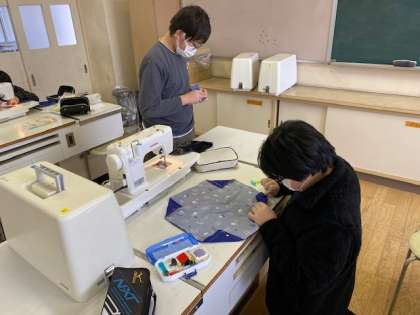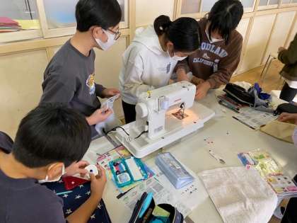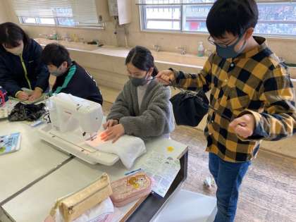 6年生の家庭科では、お弁当包みとぞうきんをミシンで縫っていました。