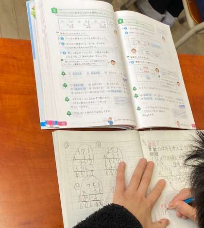 今日の算数では、小数第2位の数のかけ算に取り組んでいました。それぞれが学習したことをもとに計算にチャレンジしていました。