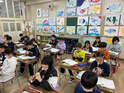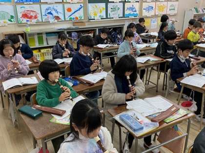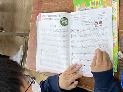 3年生の音楽では、有名な「エーデルワイス」という曲に階名をつけて、リコーダーの練習に入る準備をしていました。後半は、音符とを指の動きを確かめて練習していました。