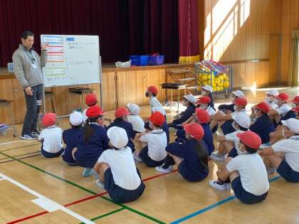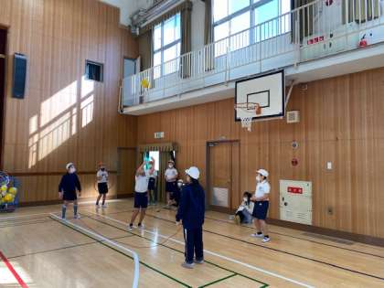 本日の4年生の体育では、短なわや中なわ、ボールやフラフープを使っていろいろな跳び方にチャレンジしていました。
