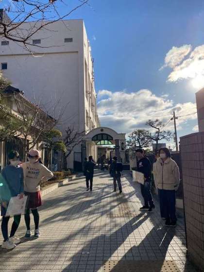 今朝の気温は3℃で冷え込みが厳しかったです。しかし、昨日とは違って日差しがあり、登校する子どもたちを照らしていました。