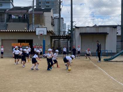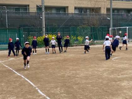 キックベースは、蹴られたボールを止めないとランナーは走り続けられるルールなので、ホームランになる場合もあり、大いに盛り上がっていました。