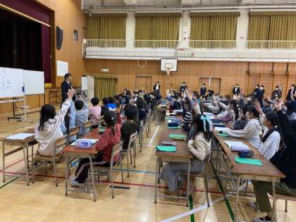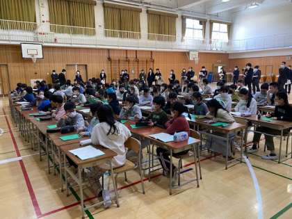 子どもたちは緊張していましたが、あっという間に安心な空間が作られました。二瓶先生の質問に、ああでもないこうでもないと頭をひねらせ考え、自分の考えたことを積極的に答えていました(^^)
