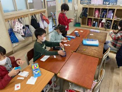 2年生の算数では、与えられた長方形の紙を使って箱を作ることに挑戦していました。