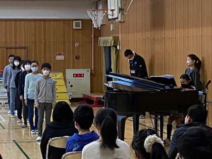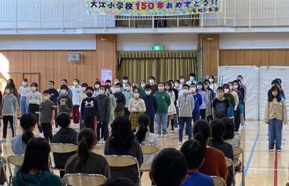 5年生は「明日へつなぐもの」を歌いました。自分たちが成長して、6年生の後を継いでいく決意が込められていました。5年生は設営から椅子の設置、当日の司会やあいさつ、後片付けに至るまで6年生を送る会をつくる裏方としても頑張ってくれました。