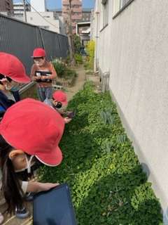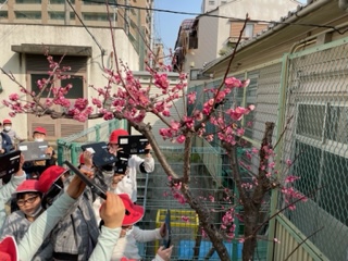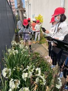 2年生活科ではタブレットを持って校庭に出て、とっておきの『春』の一枚を撮影しました。春の日差しと梅の木、ミツバチと菜の花、など春を感じる写真をもとにタブレットで交流しました。