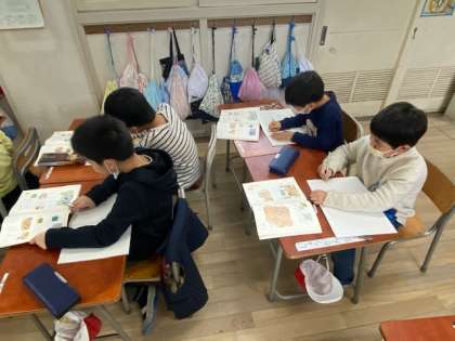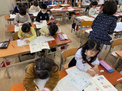 それぞれ5つ作りましょうと担任の先生が言われたことに対して、一つ、また一つと、思い浮かんだ文を書いていました。
