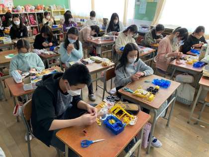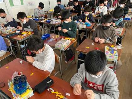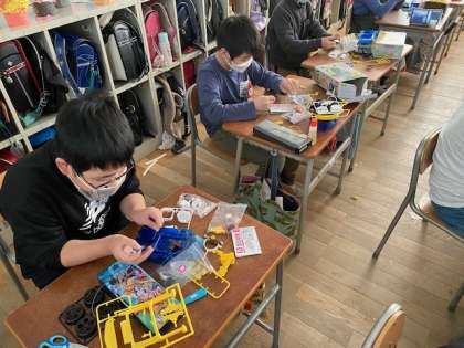 担任の先生が話す組み立て上のポイントにしたがって子どもたちは丁寧に作業を進めていました。