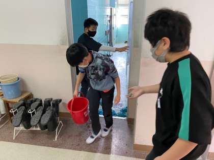 6年生が6時間目に、普段掃除をしなさそうな細かい箇所の掃除をしていました。