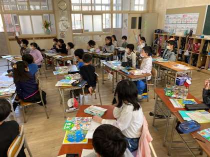 3年生では、社会、理科、図工、音楽について、学級担任である3人の先生が教科を担当し、それぞれの持ち味を生かして授業が行われます。