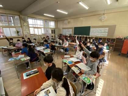 今日は『い組』の担任の先生が『は組』で社会科の授業を行いました。