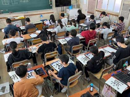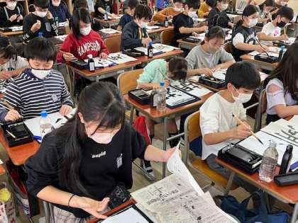 書いた字は『湖』。字のバランス、書く姿勢、筆の持ち方、筆の運び方に注意をして、集中して取り組んでいる様子が伝わってきます。