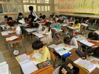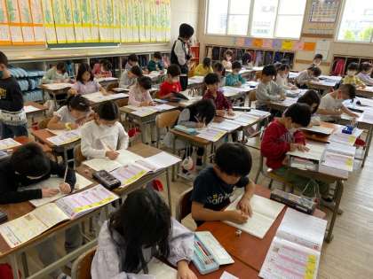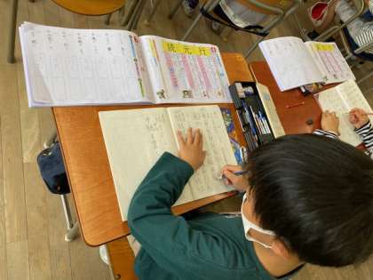 2年生の教室では、新出漢字の練習をしていました。