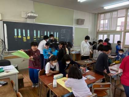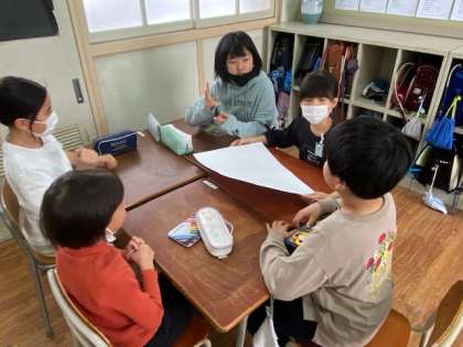4年生の教室では、係活動についてみんなで考え編成し、その係のポスター作りをしていました。