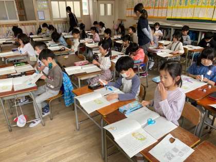 2年生の国語では、『風のゆうびんやさん』という物語を通して登場するチョウチョや犬の気持ちを考えていました。