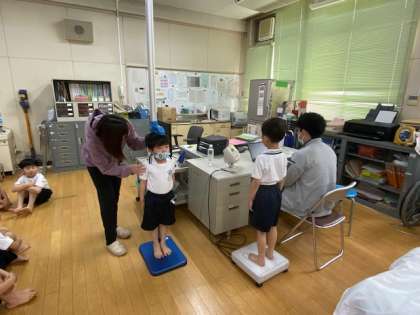 子どもたちは聞いたことを基に、スムーズに身長・体重を測ることができました。