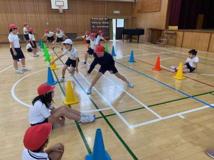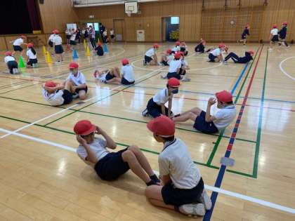 5年生の体育では、体幹を鍛えたり、俊敏性や脚力を鍛えたりと基礎体力の向上に向けて取り組みました。