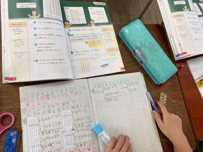 九九や10のかけ算を使うなど、たくさんの方法を発表し合い、「同じだ!」「たしかに!」など友達の考えをよく聞いていました。