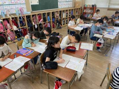 2年生の算数、今日は、0のかけ算について学習をしていました