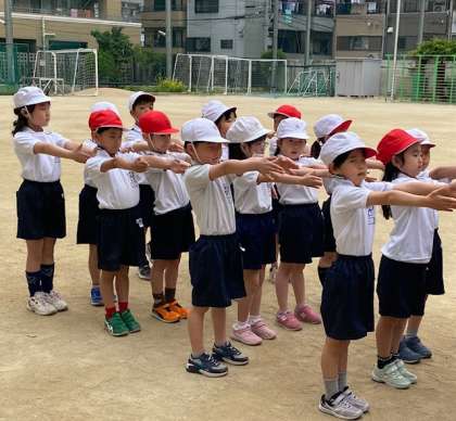 前半は鬼ごっこをして体を温め、後半は一つ一つ遊具を体験してきました。『前へならえ』も少しずつ上達しています。