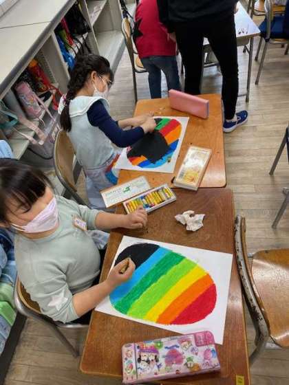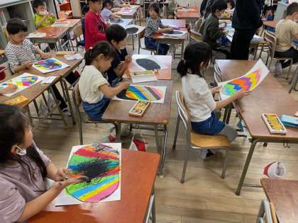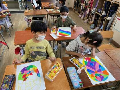 2年生の図工では、『ふしぎなたまご』と題した絵を描いていました。