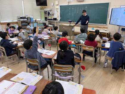 今日は、道徳で『おじいちゃんとの楽しみ』いうお話を通して楽しい世界とはどんな世界かについて考えました。