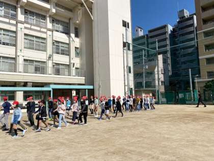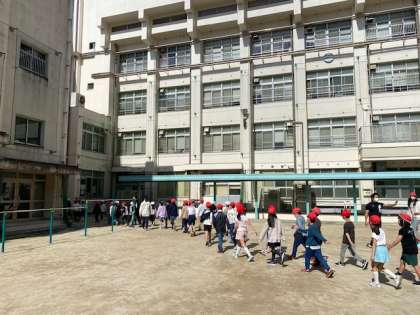 運動場には、どの学年よりも6年生が早く並んでいて、お手本となっています。