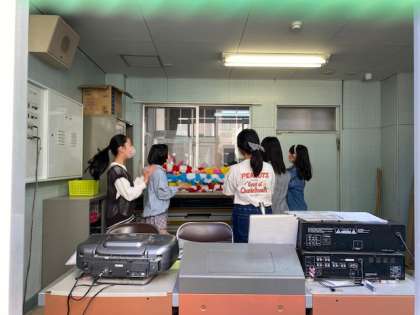 児童朝会は放送委員会が音楽やマイクの音量の調整などを担当していますが、集合の音楽に合わせて楽しそうに作業していました。