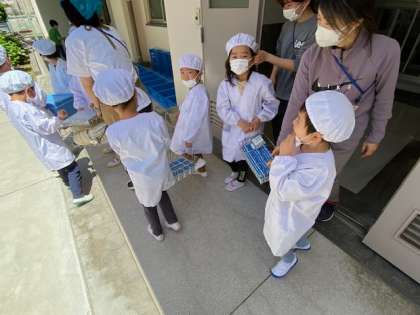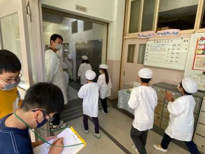 給食当番がきちんと並んで給食室に来ているかを確認するのは、給食委員会の子たちです。